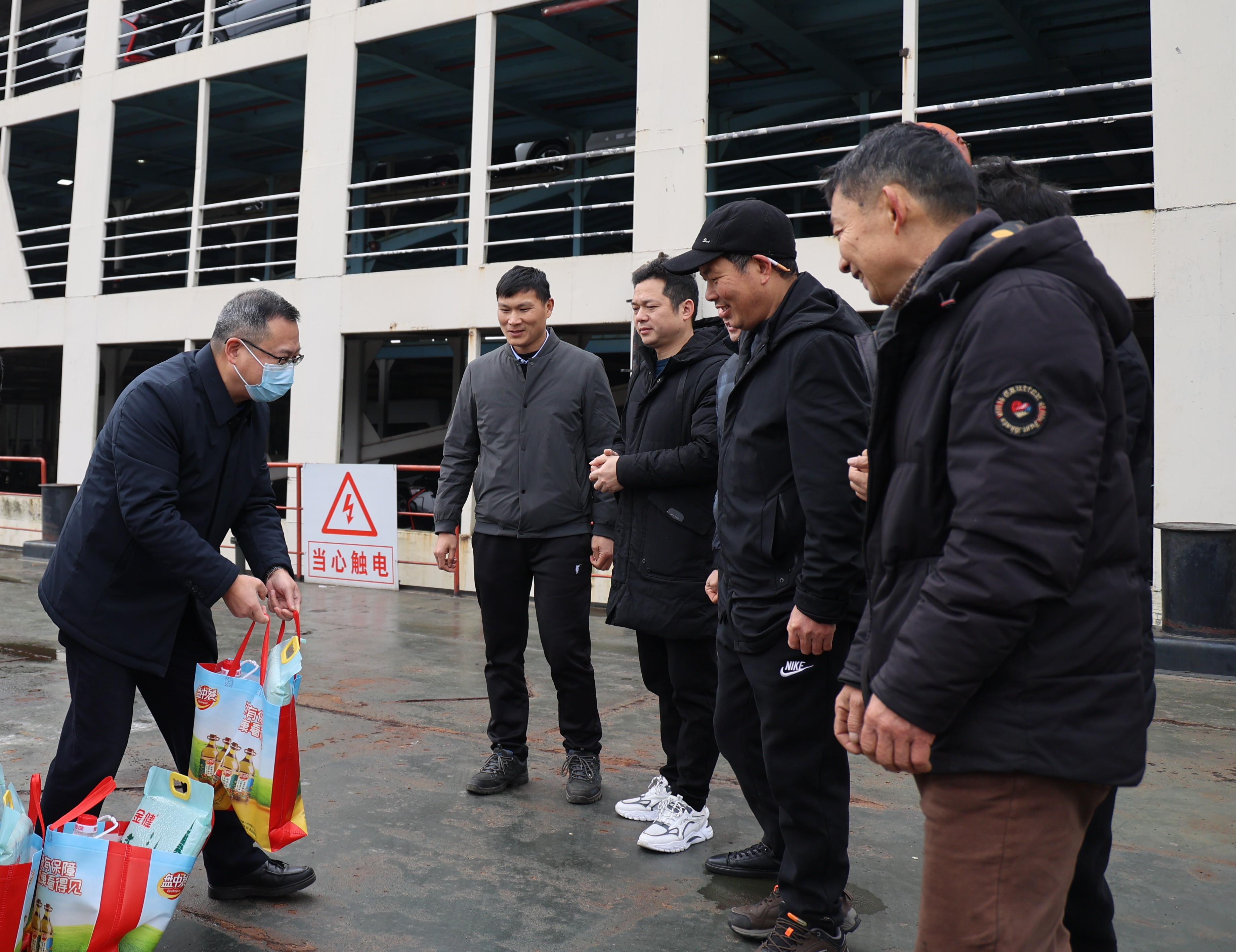 春節(jié)將至,歲寒情深。船員作為一個特殊的職業(yè)群體,工作和生活在船舶上需面對惡劣氣候、封閉環(huán)境、緊張工作等情況,常年不能回家,新春佳節(jié)更難以與家人團聚。為了讓在港船舶在長沙港度過一個歡樂祥和的春節(jié),2022年1月30日,新港公司黨委副書記、總經(jīng)理辛華,黨委委員、紀委書記黃紅星及副總經(jīng)理鄭美洲帶領市場營銷部、生產(chǎn)運營部工作人員對已到港船舶進行春節(jié)前的親切慰問,并給予安全提醒。  聲聲問候顯真情,句句話語暖人心。船員們表示非常感謝來自新港公司的慰問和節(jié)日祝福,在平時的工作中已感受到了新港人的高素質(zhì)和專業(yè)化水平,節(jié)日期間更感受到了新港公司優(yōu)質(zhì)服務和人性化服務,讓漂泊在外的船員們感受到了滿滿的關(guān)懷和溫暖。 |