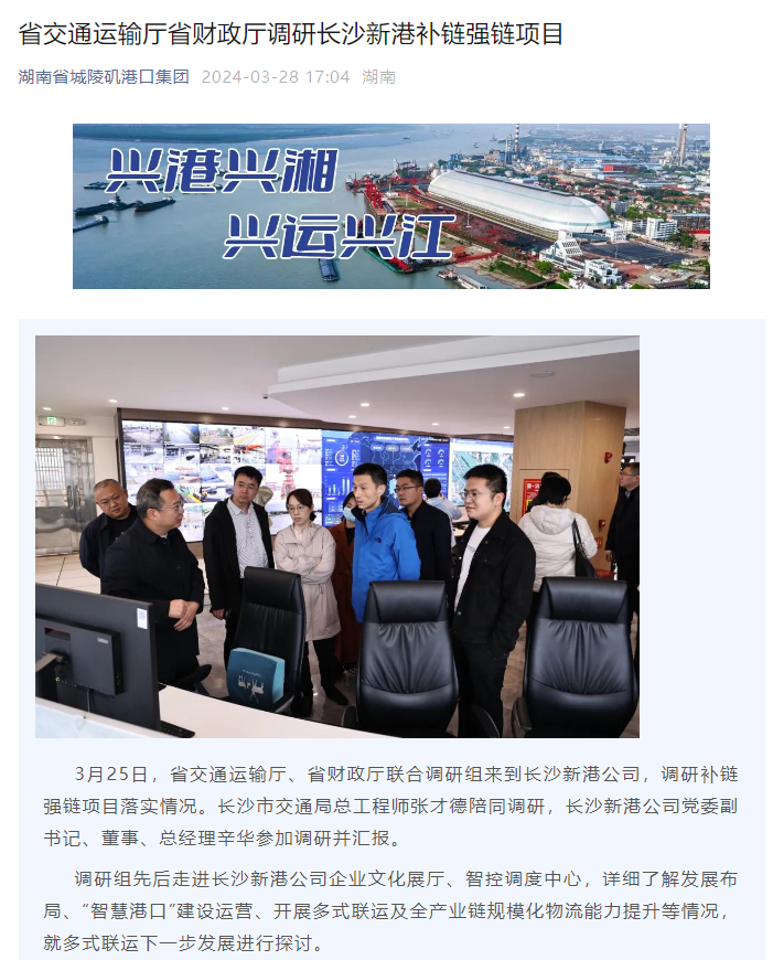 省交通運輸廳省財政廳調研長沙新港補鏈強鏈項目
