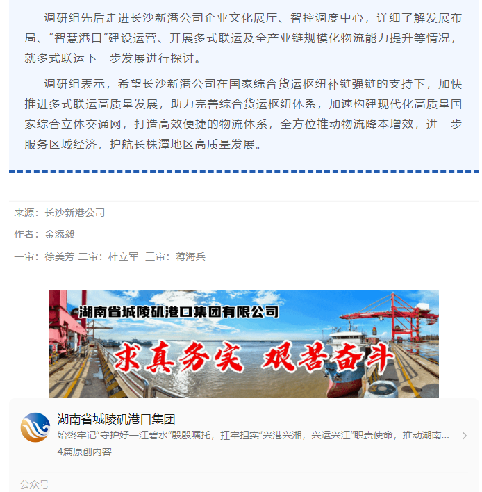 (此稿件轉自湖南省城陵磯港口集團有限公司公眾號)