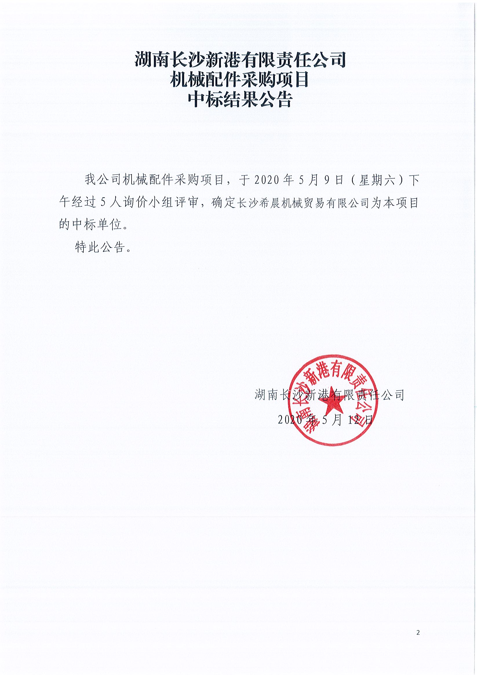 機械配件采購項目《中標(biāo)結(jié)果公告》