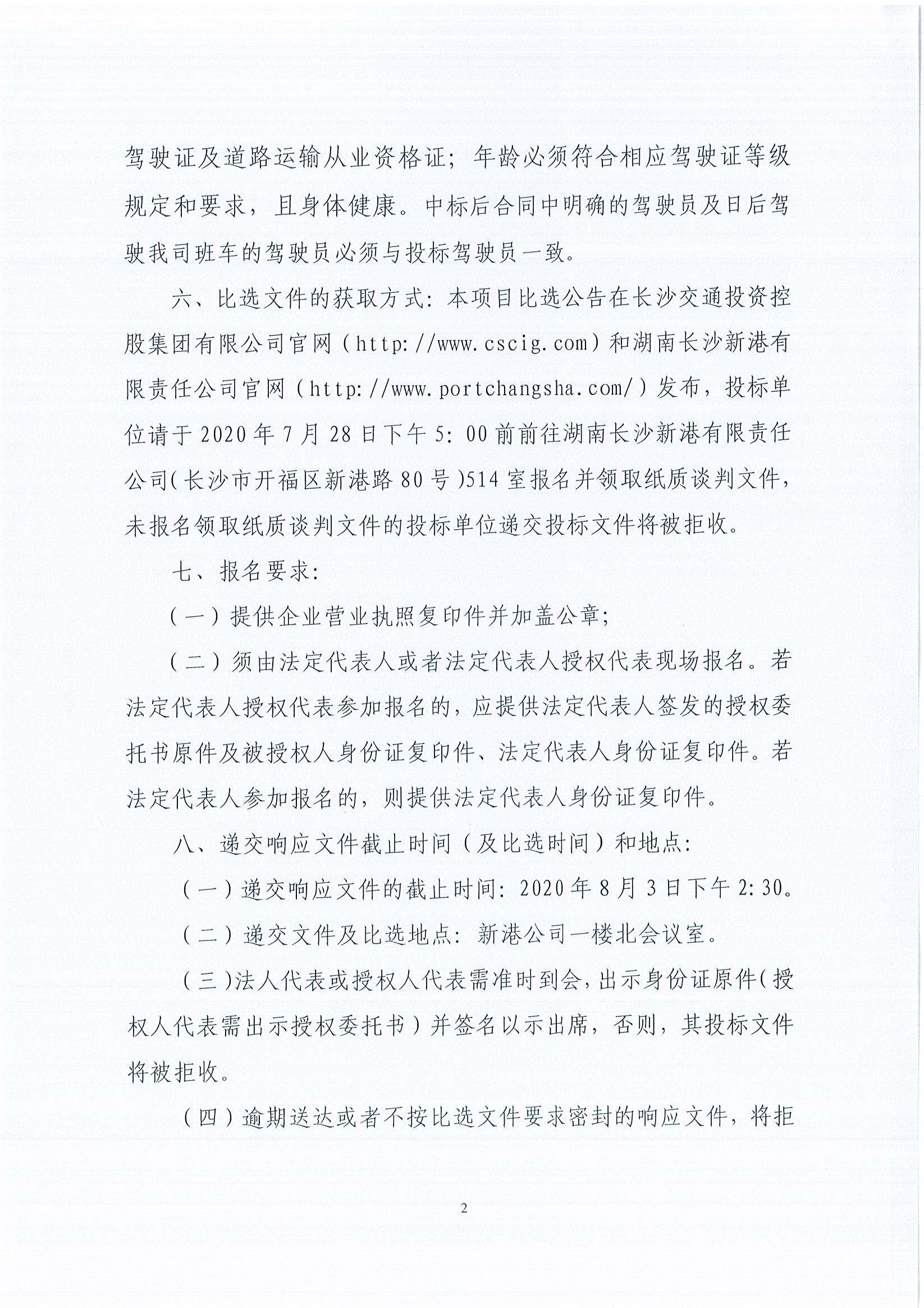 湖南長(zhǎng)沙新港有限責(zé)任公司長(zhǎng)沙新港員工交通班車租賃項(xiàng)目比選公告(第二次)