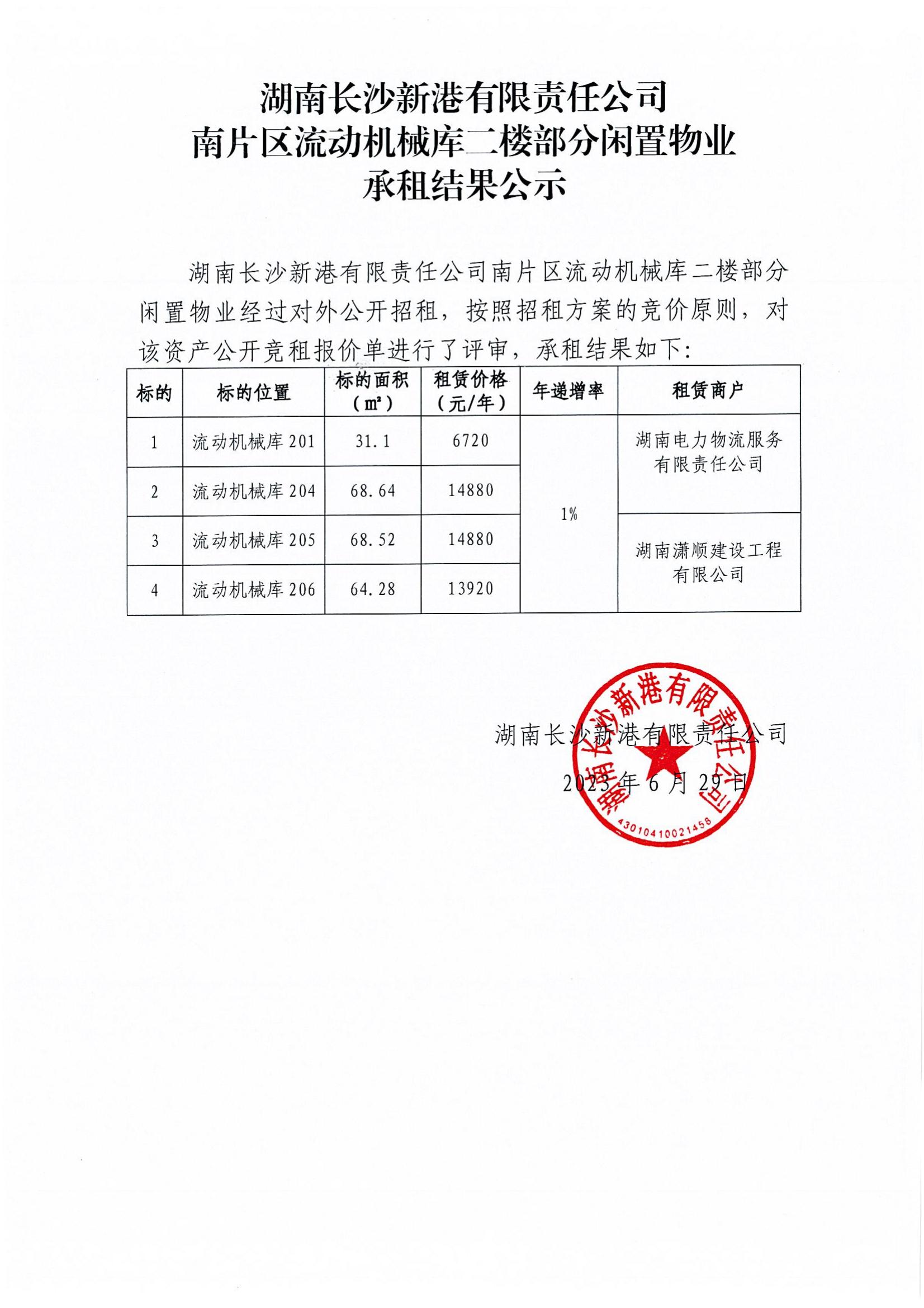 新港公司南片區流動機械庫二樓部分閑置物業承租結果公示