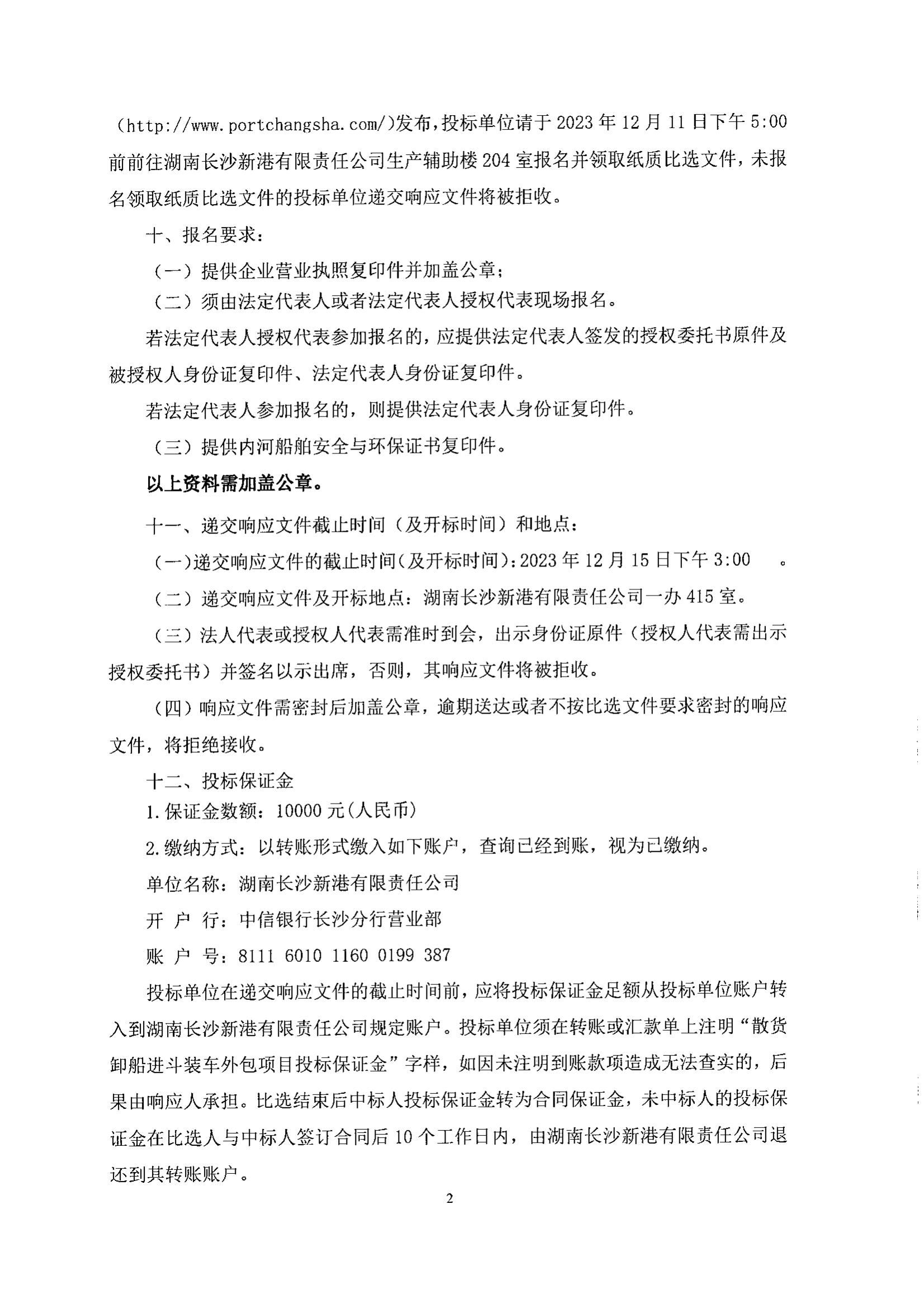 湖南長沙新港有限責任公司散貨卸船進斗裝車外包項目比選公告